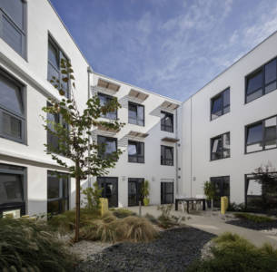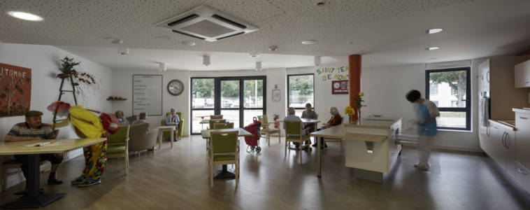Restructuring and extension of the geriatric center with a capacity of 159 beds (including 62 in extension) in four phases, in occupied site, with transfer of residents to allow the maintenance of activities.