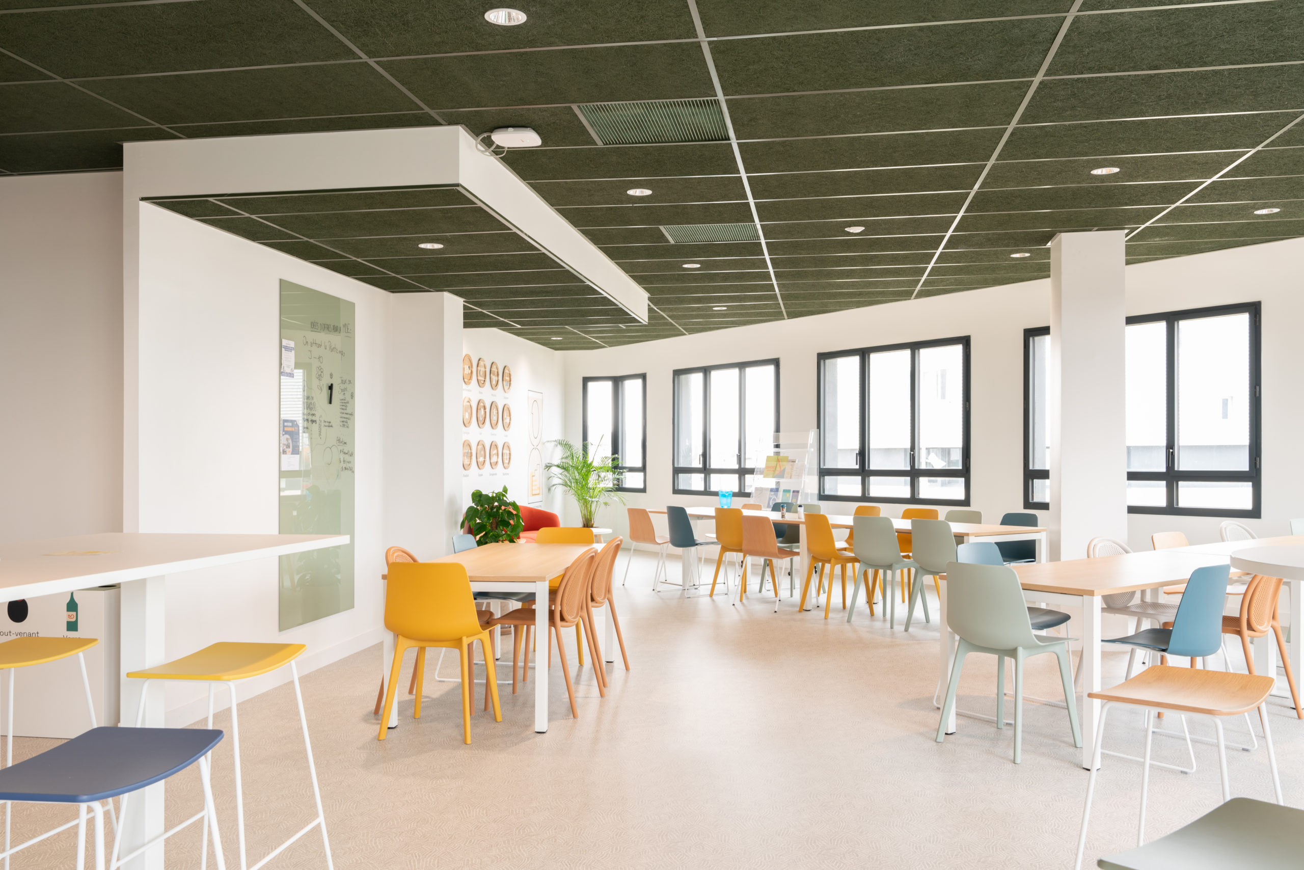 Aménagement au sein de l’ilot Willy Brand de la Maison de l’Entreprise de La Carène sur 5 niveaux, comprenant hall-atrium, accueil, cafétaria, salons business, bureaux, salles de réunion, salle de restaurant, salle de créativité et pépinière d’entreprises. Développement d’une identité graphique et architecturale avec mobiliers sur-mesure et mise en récit des lieux. Traitement du parvis et de la terrasse.